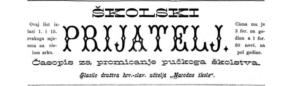 Dio naslovnice devetog tečaja Školskog prijatelja iz 1876. godine.